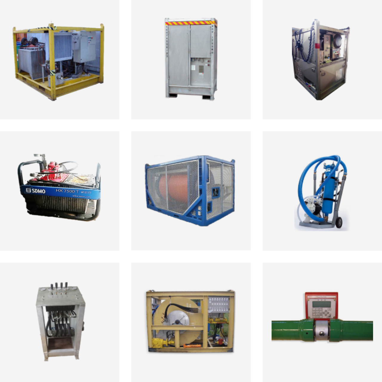 Vår "utleie-pool" består av hydrauliske kraftpakker, "reels", test- og filtreringsenheter, og hydrauliske og mekaniske verktøy. Egnet for bruk on- og offshore.