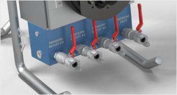 The heavy duty connection block contains tree outputs ports. All ports – input and outputs- can be equipped with isolation ball valves or quick connectors.